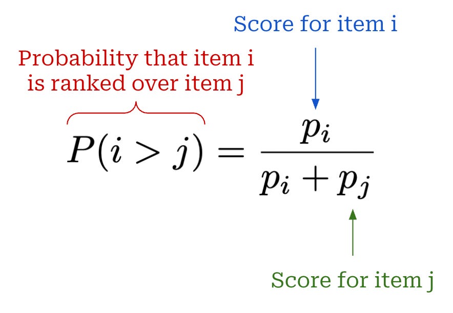 Reward Model 的标准实现源自 偏好 Bradley-Terry 模型(Bradley-Terry model of preference), 一种用于根据成对比较数据(paired comparison data)中项目的相对强度(relative strength)或性能(perfoReward Modelance)进行排序的统计模型。 给定两个从同一分布中抽取的事件 和 , Bradley-Terry 模型定义了事件 相对于事件 获胜或被偏好的概率如下: